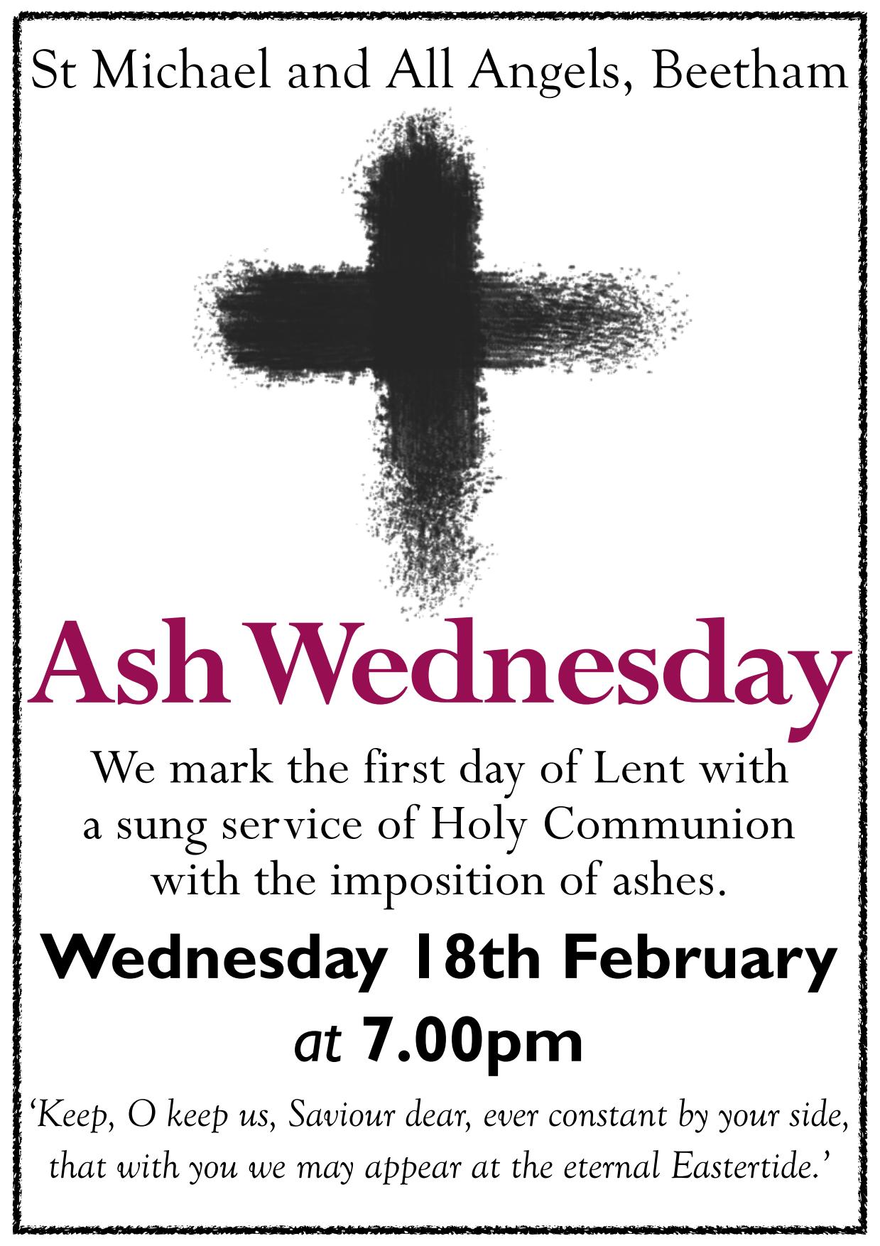 * Our Ash Wednesday service will be at 7pm on 18th February